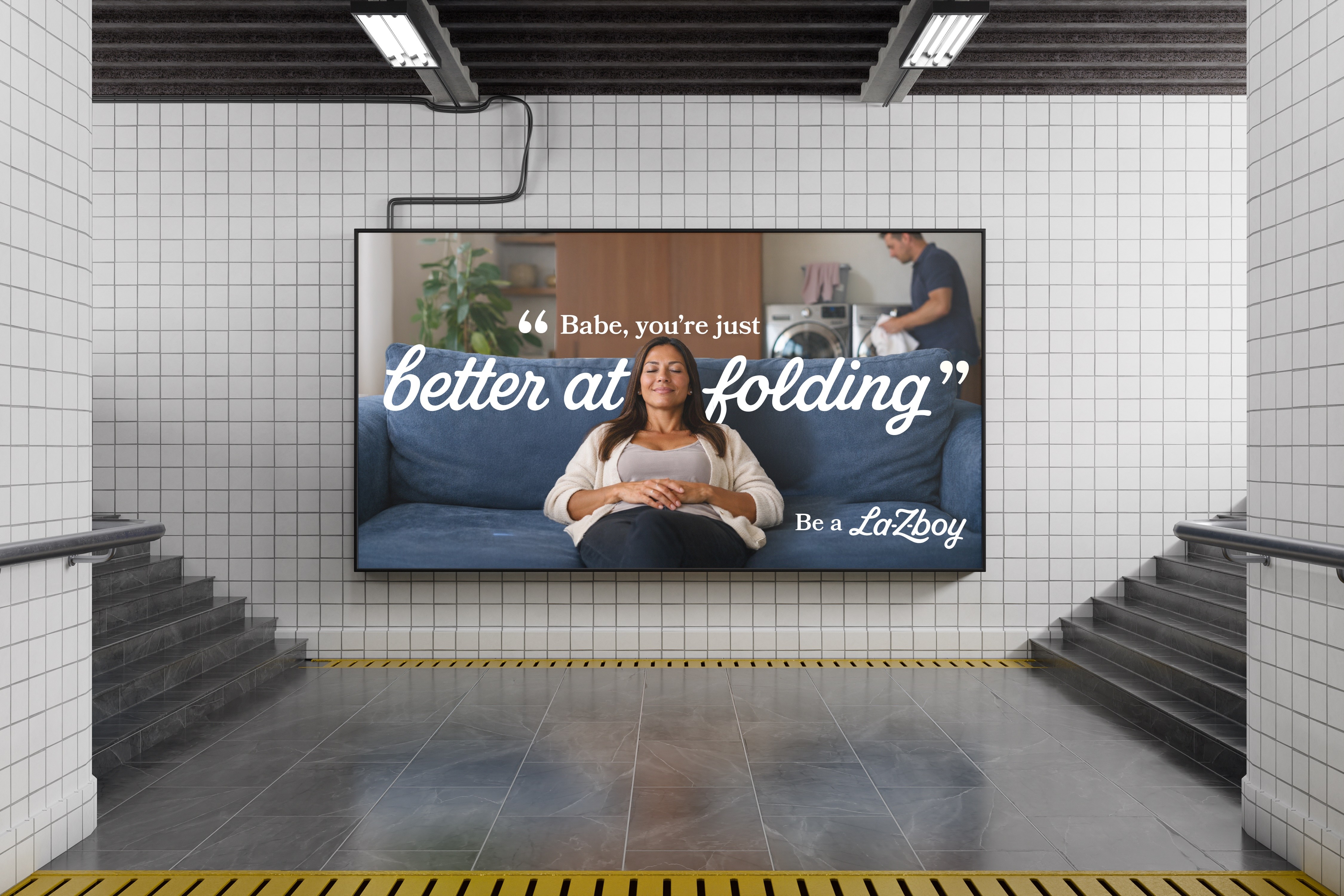 But we wanted to flip the script, so we swapped the gender roles. Our OOH campaign encourages women to be true lazy boys.